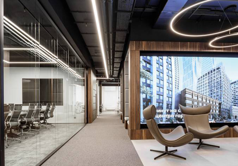 Описание проекта: Новый головной офис Level Group, одной из лидирующих компаний столичного рынка девелопмента, начал свою работу в БЦ Wall Street на Валовой улице – он расположился на 4-ом этаже бизнес-центра. Одной из особенностей проекта является высокая доля импортозамещения – 85% всех материалов и оборудования, начиная от фальшполов и заканчивая системами освещения, были произведены в Рязани. Оставшиеся 15% пришлись на азиатских (8%) и европейских (7%) производителей.